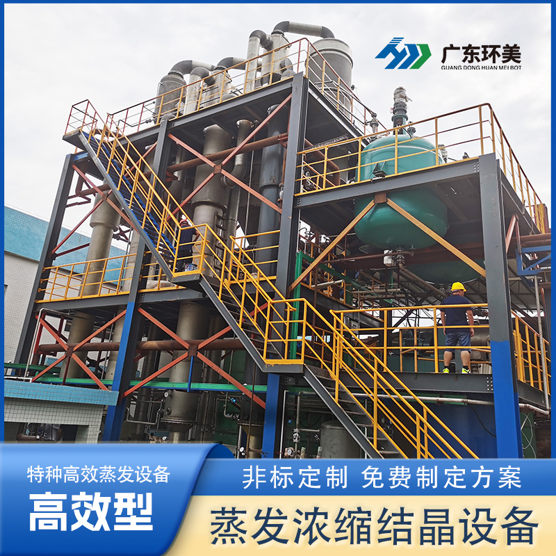 各效加熱器、各效蒸發(fā)分離器、冷凝器(混合式或表面式)、各效強(qiáng)制循環(huán)泵、各種料液輸送泵、真空泵、冷凝水泵、操作平臺、電器儀表控制柜及界內(nèi)管道閥門等組成。